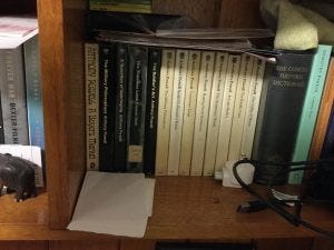 Despite the care with which I collected it has been difficult to make collections of all twelve volumes in a single publishing edition. When I began collecting, the titles were in Penguin with that familiar orange livery and some with cover drawings by Osbert Lancaster.