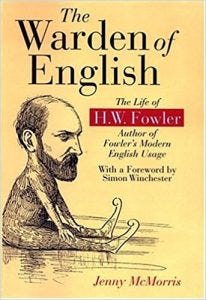 HW Fowler was an extraordinary man whose character and work are pleasingly brought to life in The Warden of English by Jenny McMorris. Fowler lived from 1858 to 1933. After twenty years as a secondary school teacher, in 1904 he started work for the Oxford Univ. Press. He was a physical fitness buff who for many years went for a daily run and an ocean swim. He married at 50 and at the age of 56, when war broke out, he wangled his way into the army and demanded to be sent to the front.