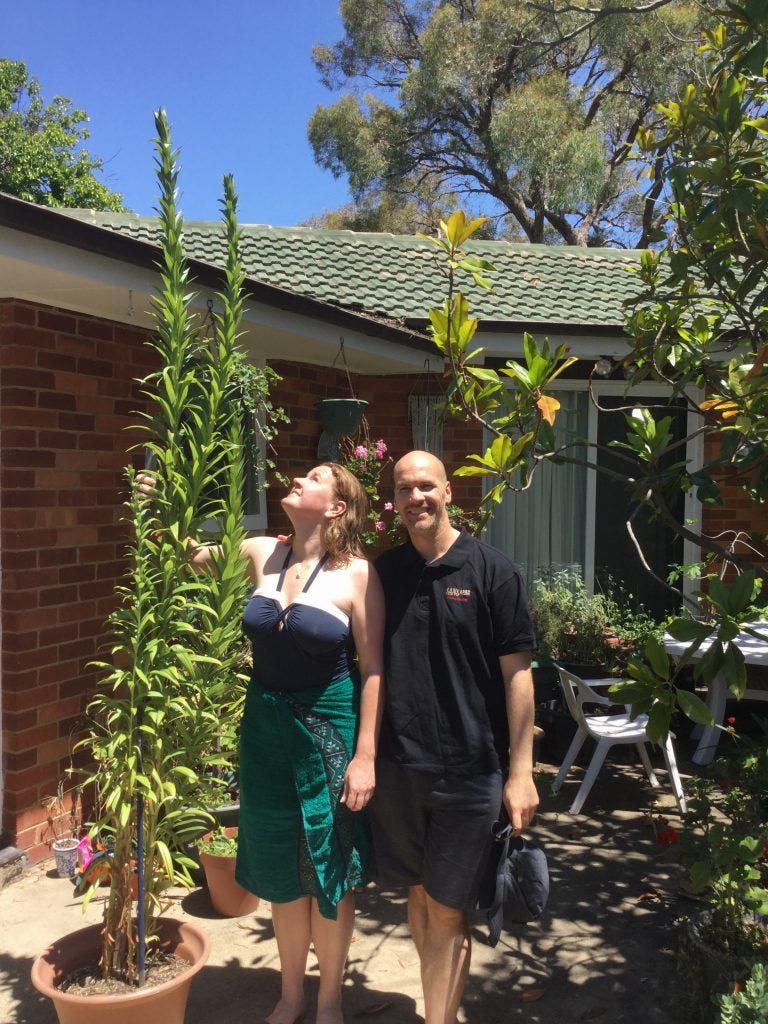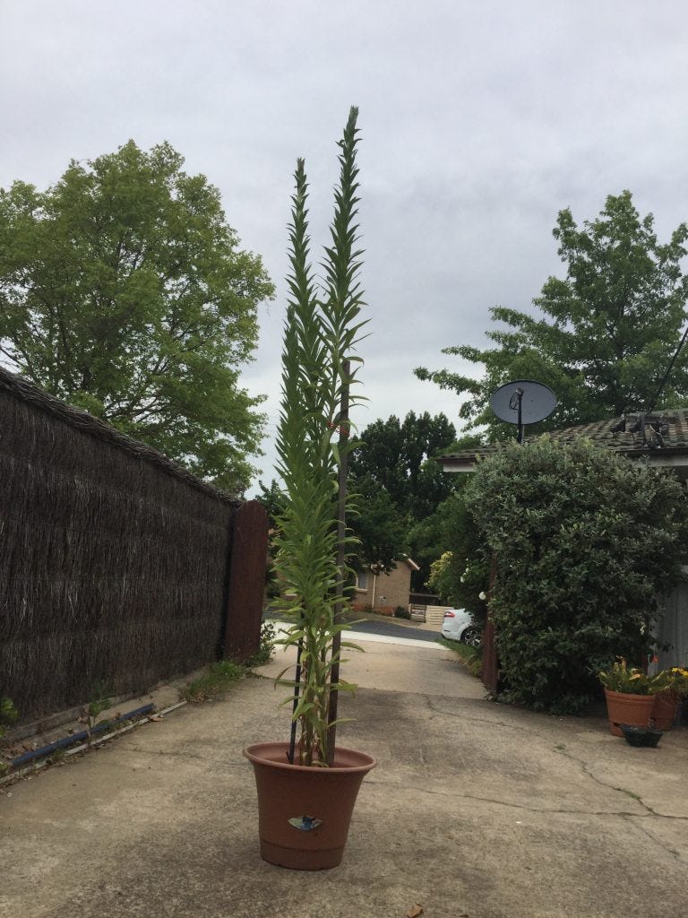 "Lilium longiflorum, often called the Easter lily, is a plant endemic to the Ryukyu Islands (Japan). It is a stem rooting lily, growing up to 1m (3ft 3in) high [sic!]. It bears a number of trumpet shaped, white, fragrant, and outward facing flowers." (Wikipedia)