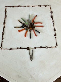 And there were keys – more keys than in a locksmith’s shop – a clockface-full of secateurs, and interesting garden shears.