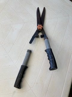 In which it is explained how the arrival of a grandchild and contemplation of dysfunctional garden shears are combining to have me keep the garage tidy.